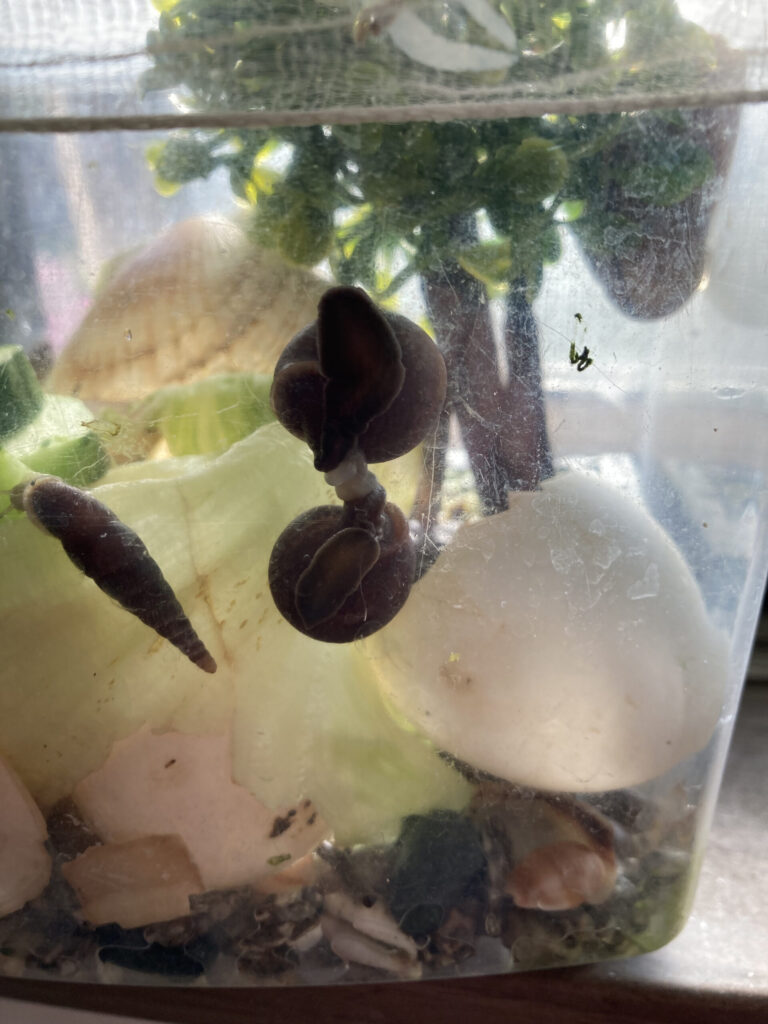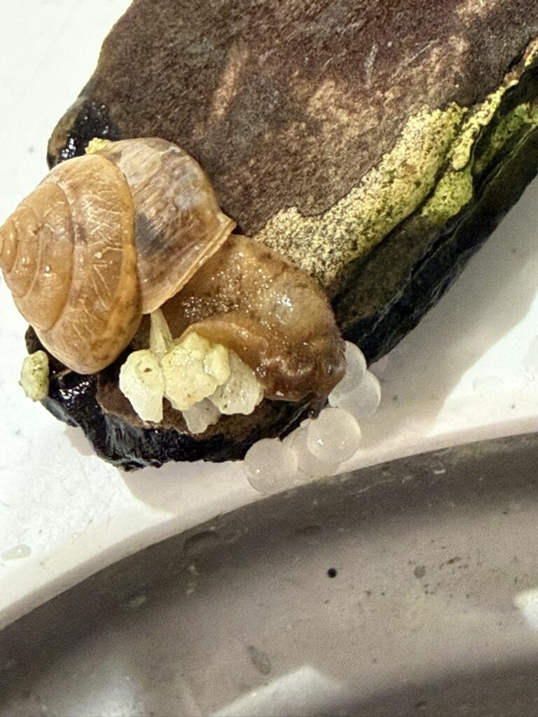 そのためか、飼育していると、ニッポンマイマイは比較的頻繁に交接し、次々と卵を産んでいく様子が観察されます。