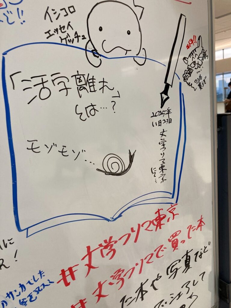 こうして文学フリマを堪能した私は、掲示板のスペースに記念にカタツムリを記して、東京ビッグサイトを後にしたのでした🐌