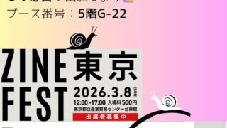 お知らせ 2026年3月8日(日)ZINEフェス東京に出店いたします🐌 カタツムリをテーマにZINEの作品を制作している「こつむ舎」は、今週末に浅草で開催のZINEフェス東京に出店いたします🐌・日時:2026年3月8日(日)・場所:東京都立産業貿易センター 台東館(浅草駅徒歩5分)ぜひ、イベントに遊びに来てくださいね! 2026.03.02 お知らせ